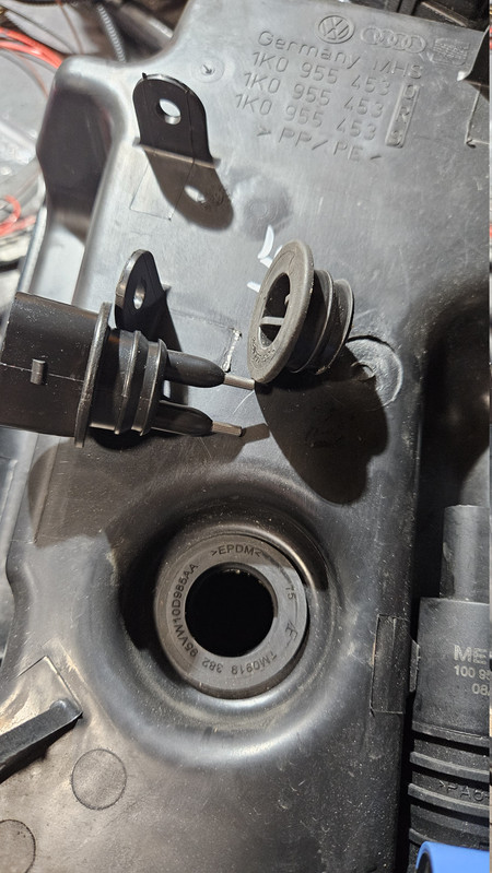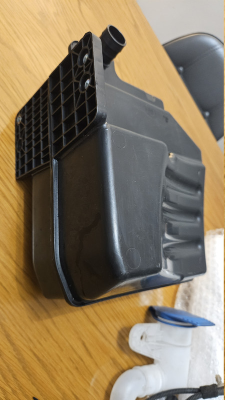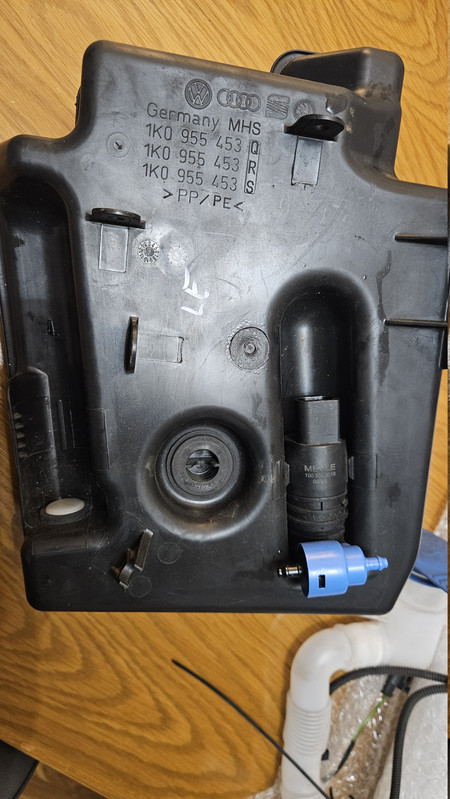 Took delivery of the 5.5 litre reservoir that is used with the headlight washer system. Weirdly this one came off a Seat Leon mk2 2010 without a headlight washer system or a level sensor, but all holes were there with factory bungs in which suits me fine. Pulled the level sensor bung out and fitted mine.