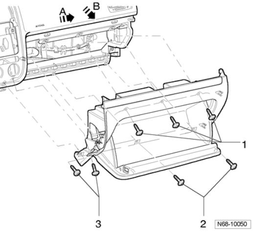 theres 3 along the bottom (outside of the glovebox), 3 along the top (inside of the glove box) and there is one torx screw hidden just above the ash tray you have to pull a plastic cover off to reach it
